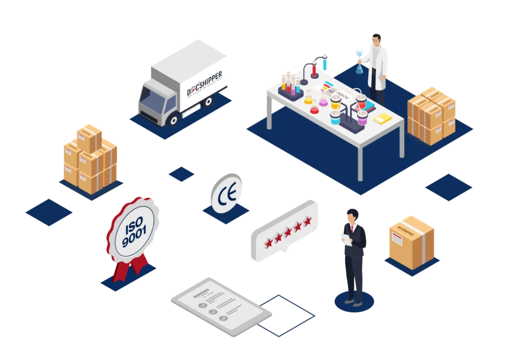 Vérification CE, RoHS, REACH, ISO, et exigences pays (ex. SIRIM/MOH/MITI). Alignement documentaire pour éviter les blocages douane.
